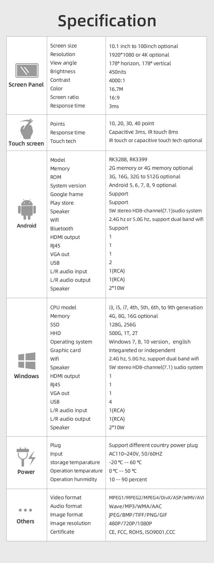 Touch Options Infrared Touch/Capacitive Touch/Non-Touch